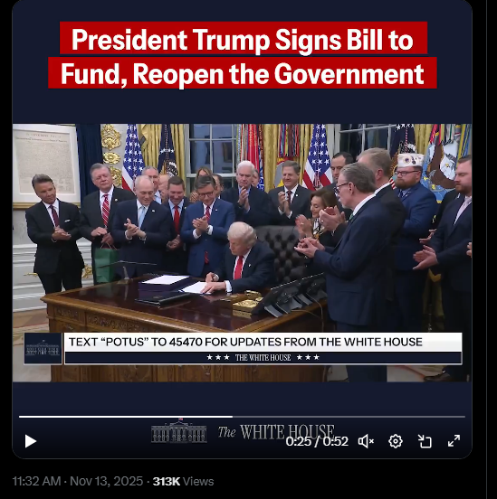 President Trump signs bill to OFFICIALLY reopen the government, ending the Democrat Shutdown.
